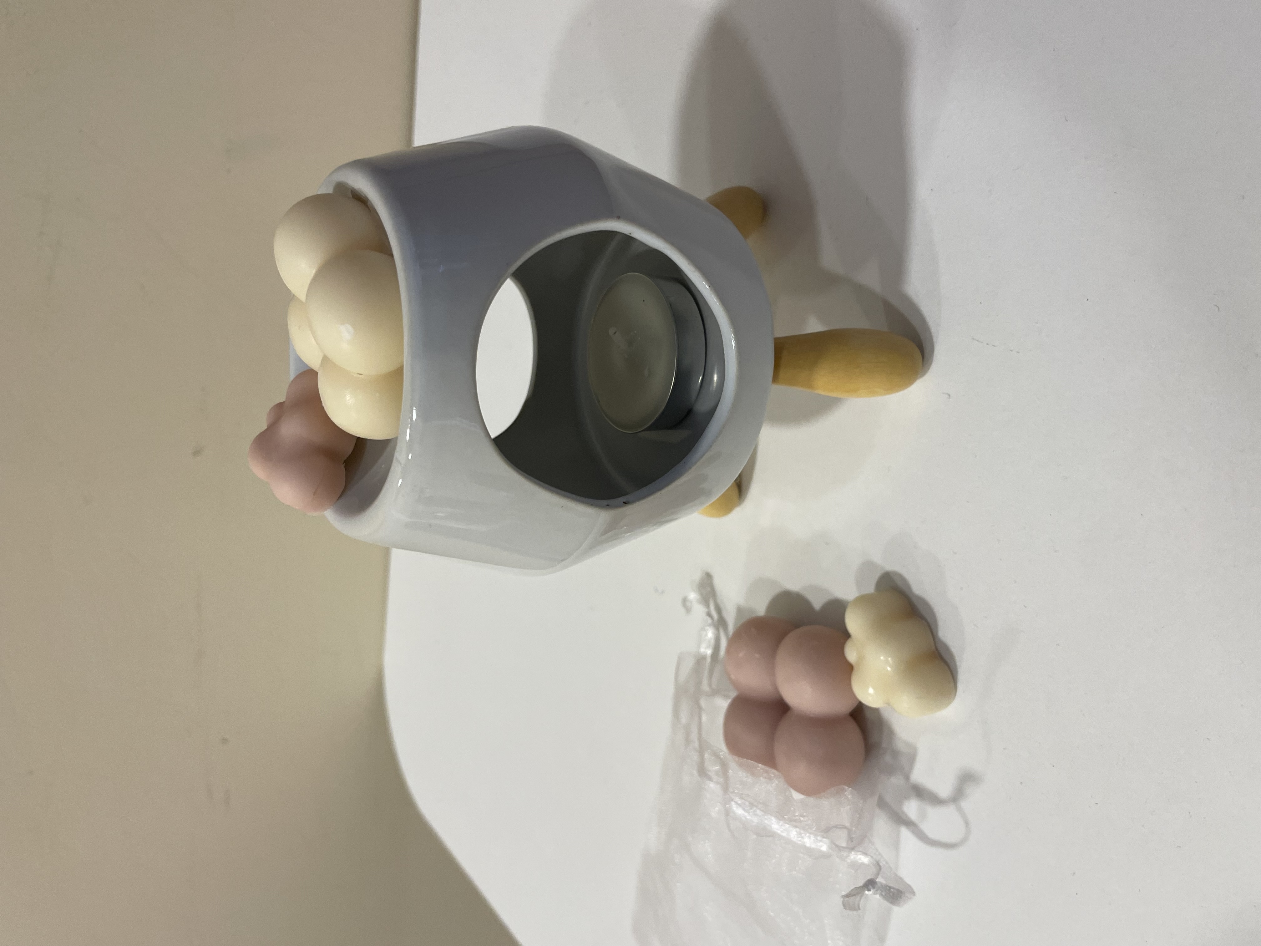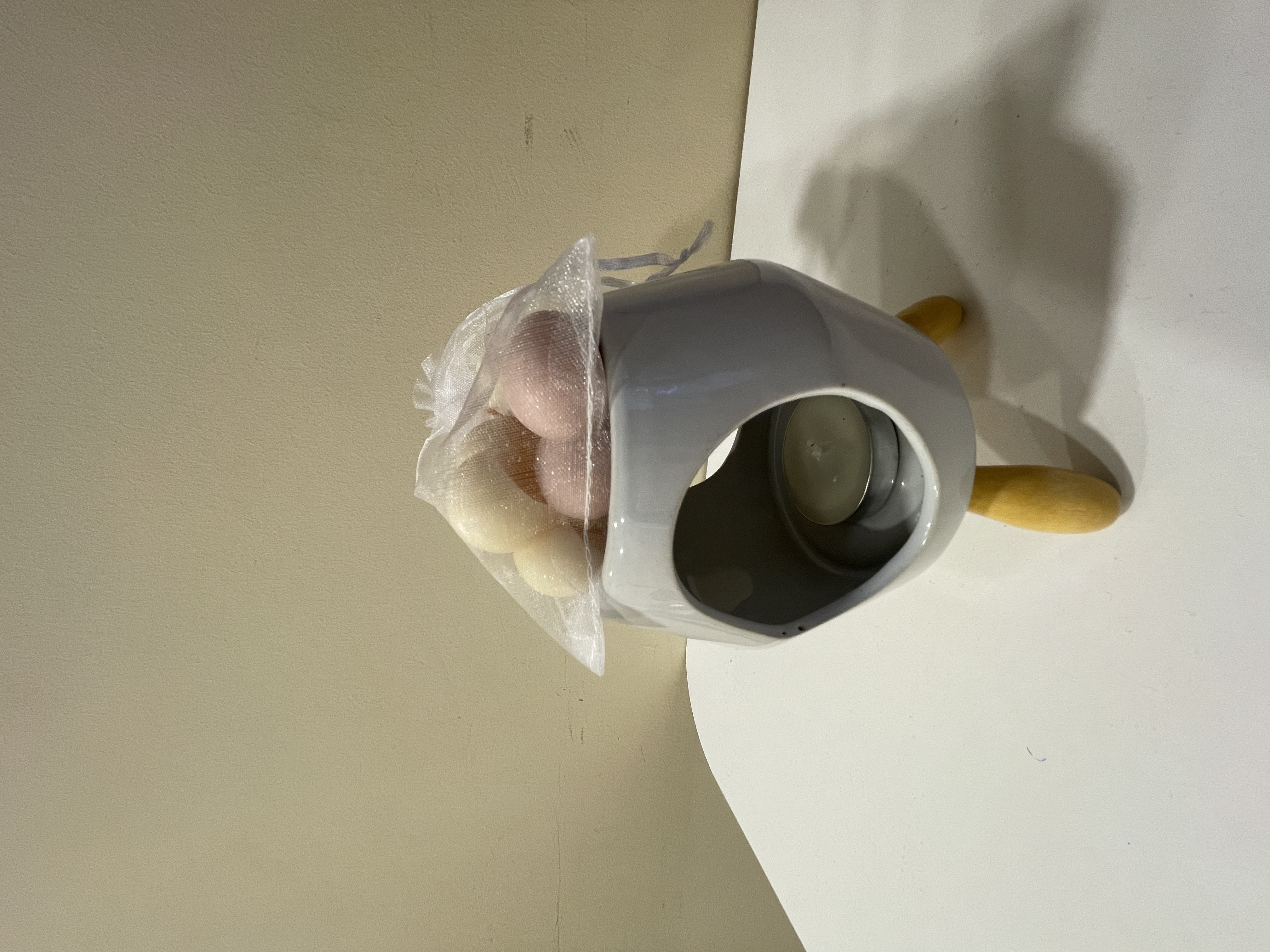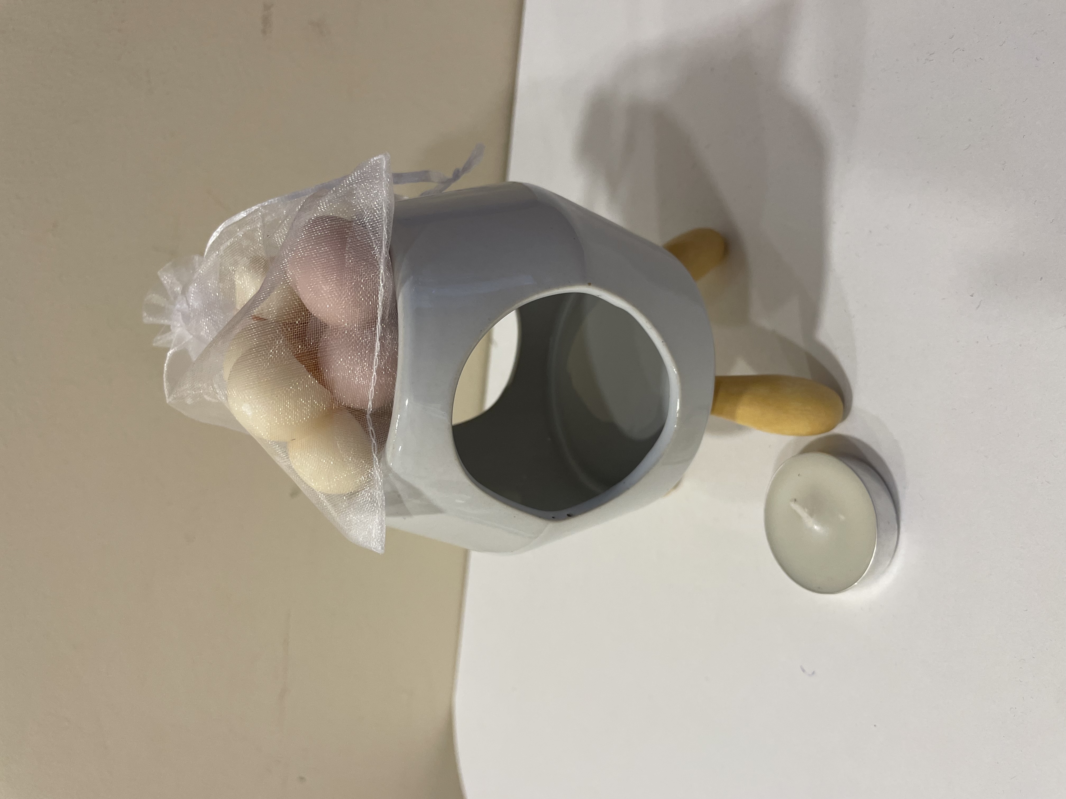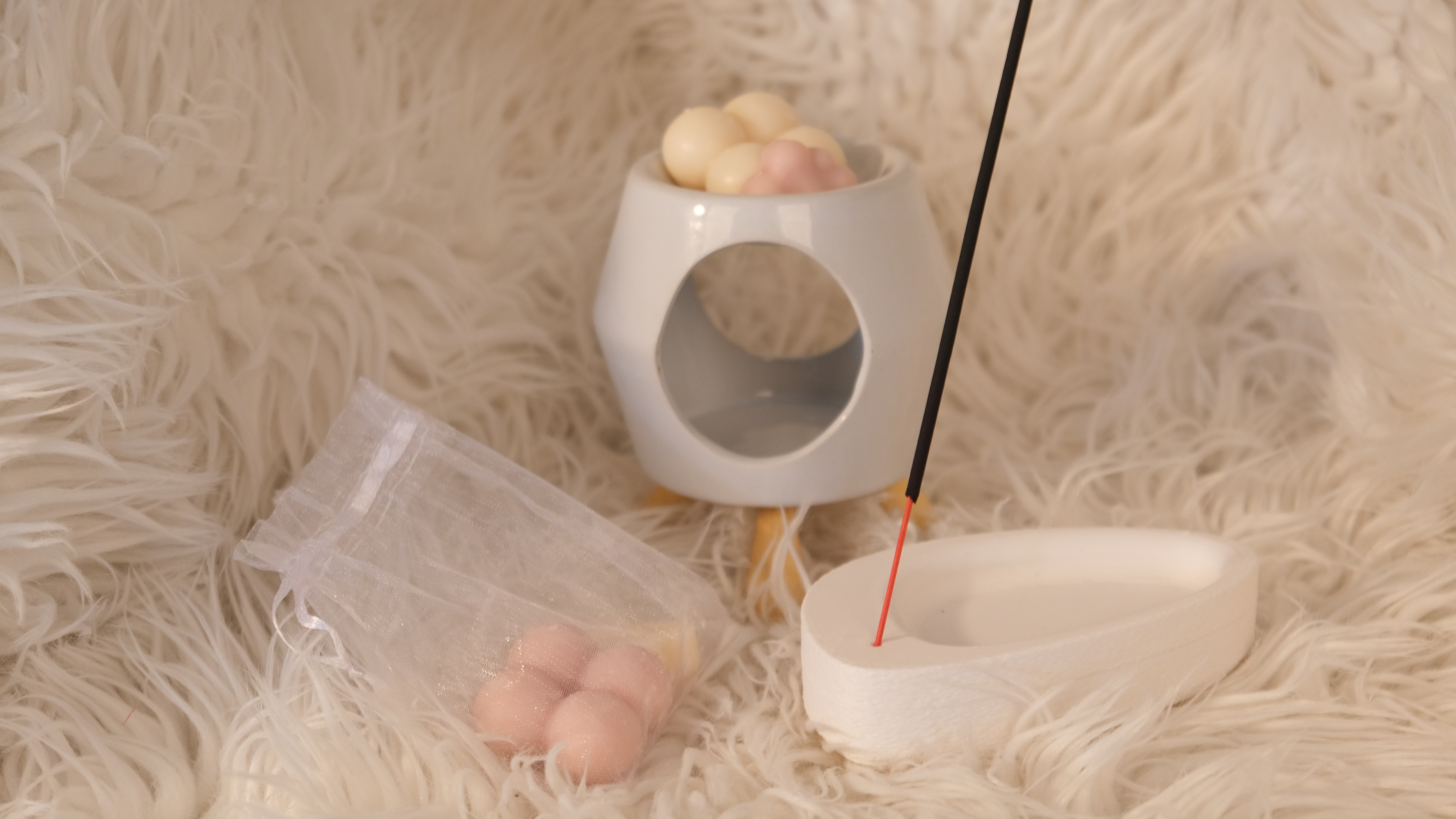 Minimalist tasarımıyla beyaz seramik buhurdanlık, portakal kokulu buhurdanlık mumu, tütsülük ve tütsüleriyle evinize dinginlik katıyor.