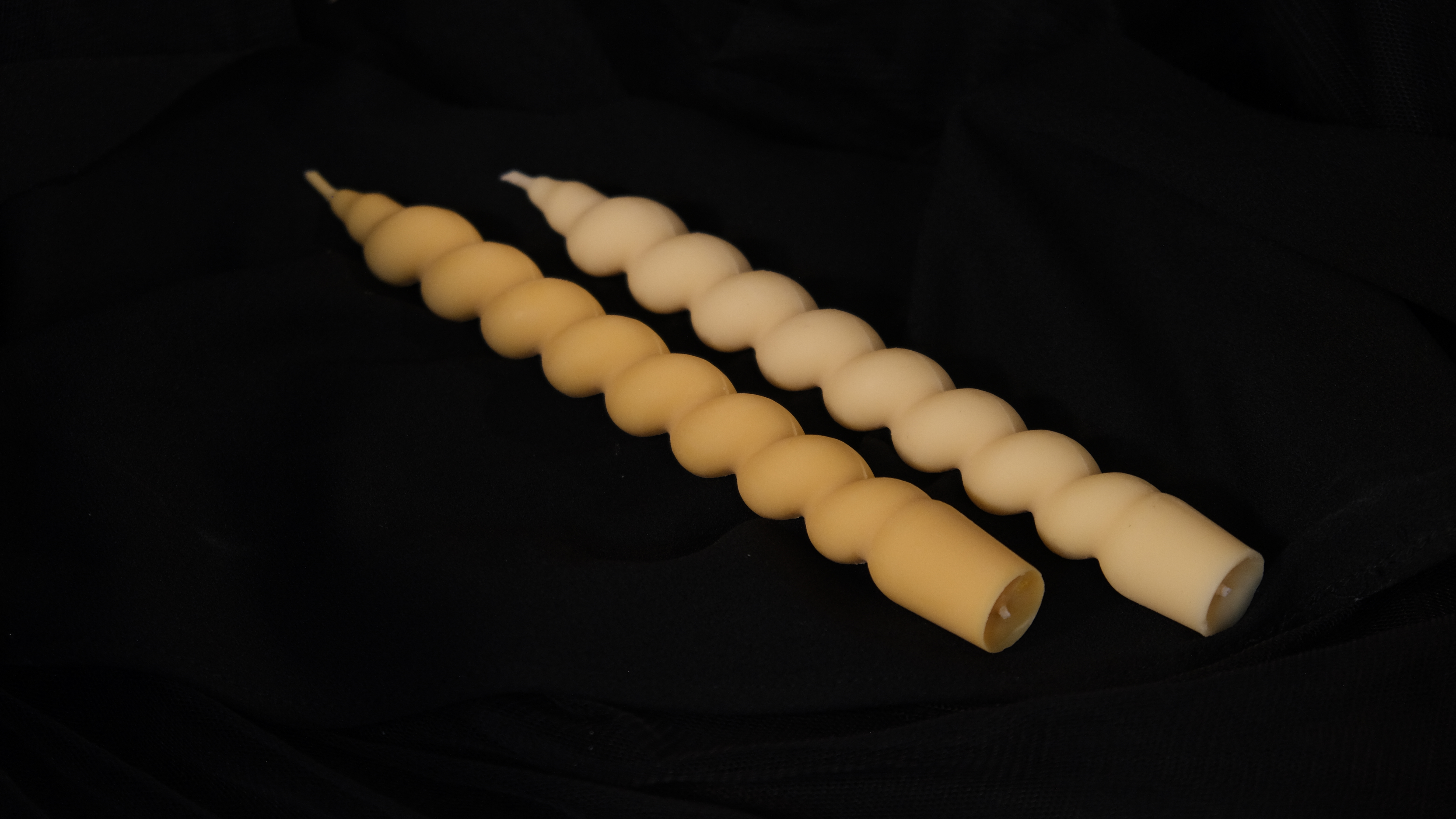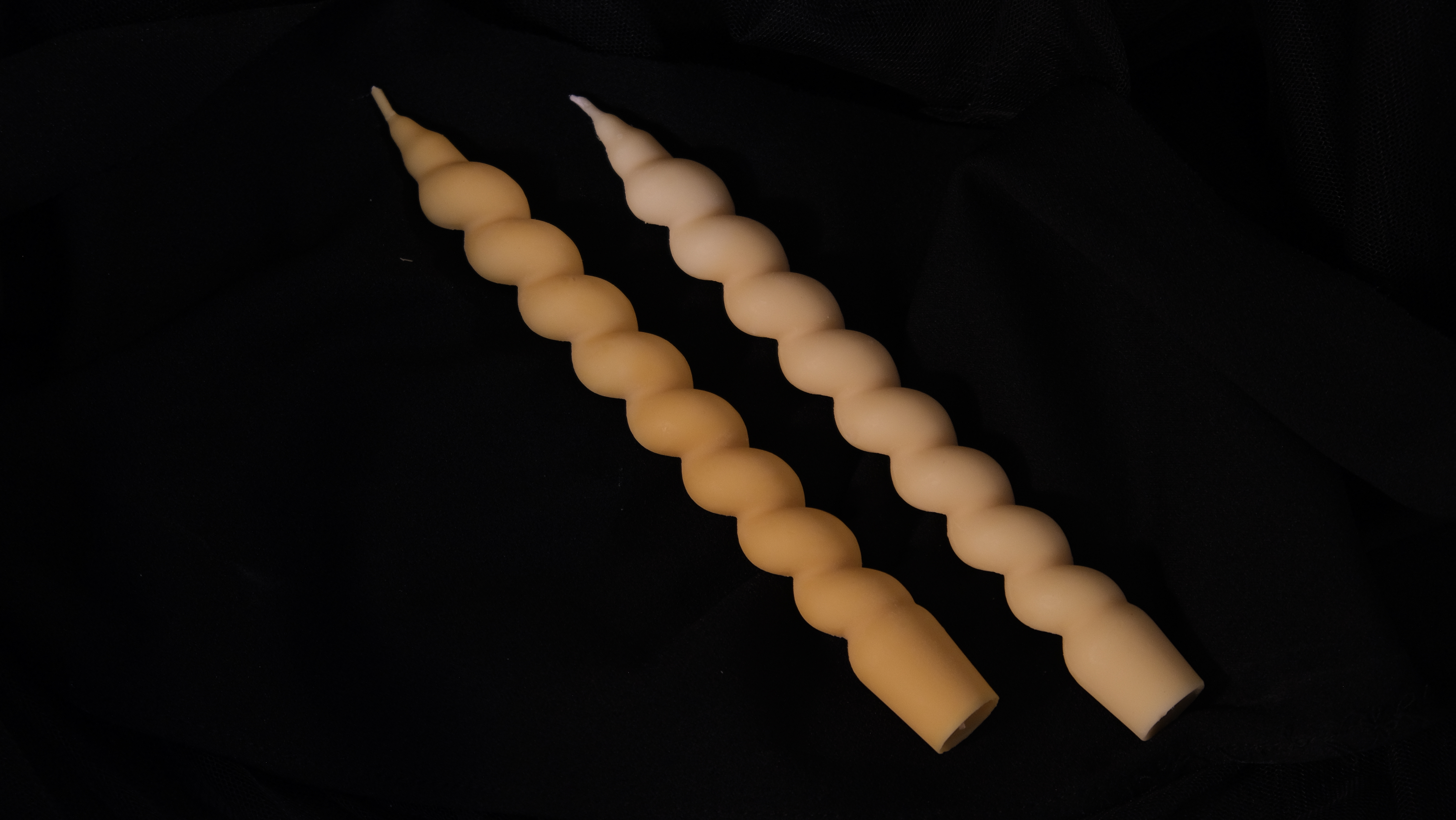 Turuncu ve açık turuncu renklerde ikili şamdan mum seti. Halloween dekorları ve masalar için ideal. Stok Kodu: ipa15