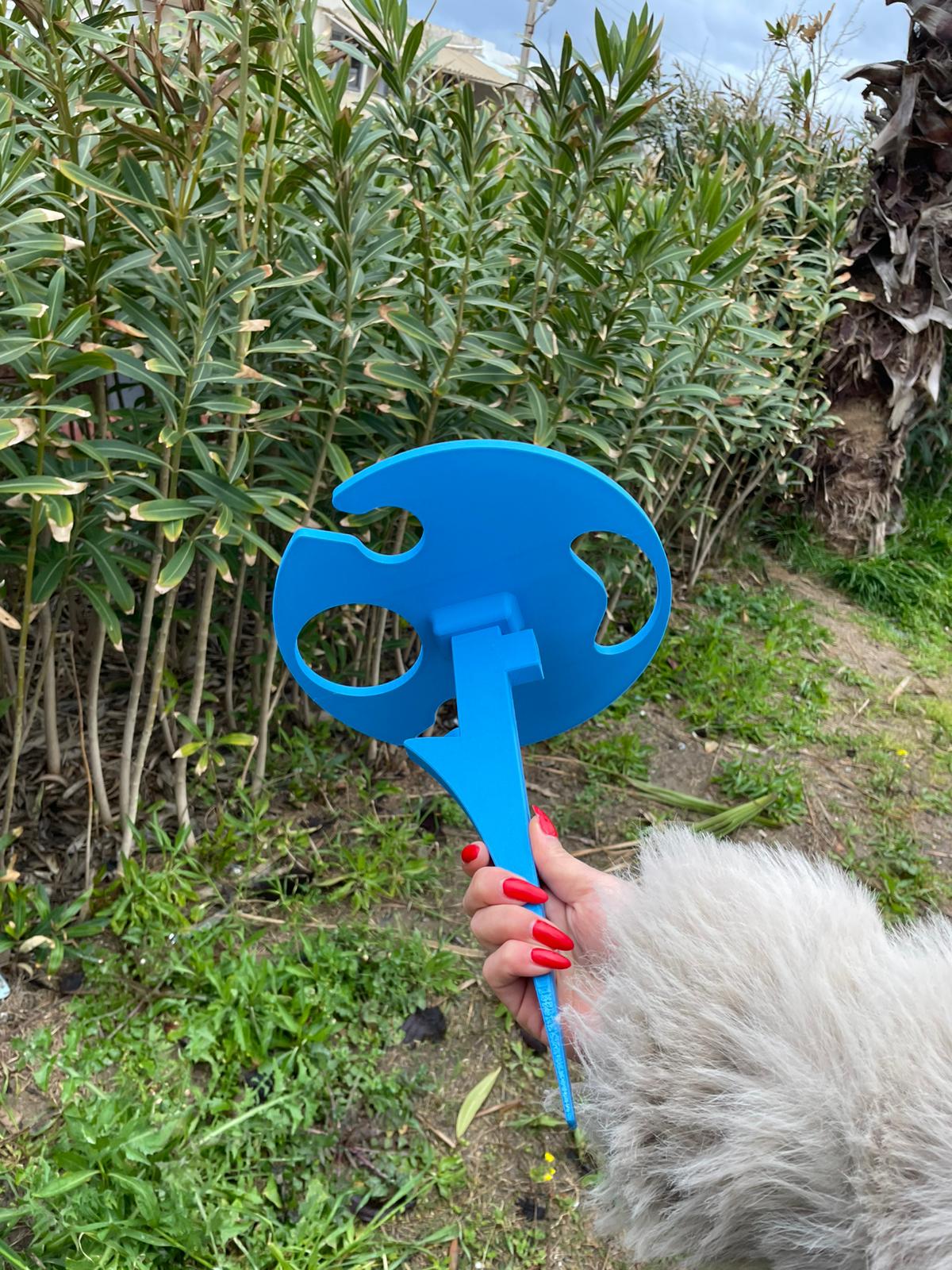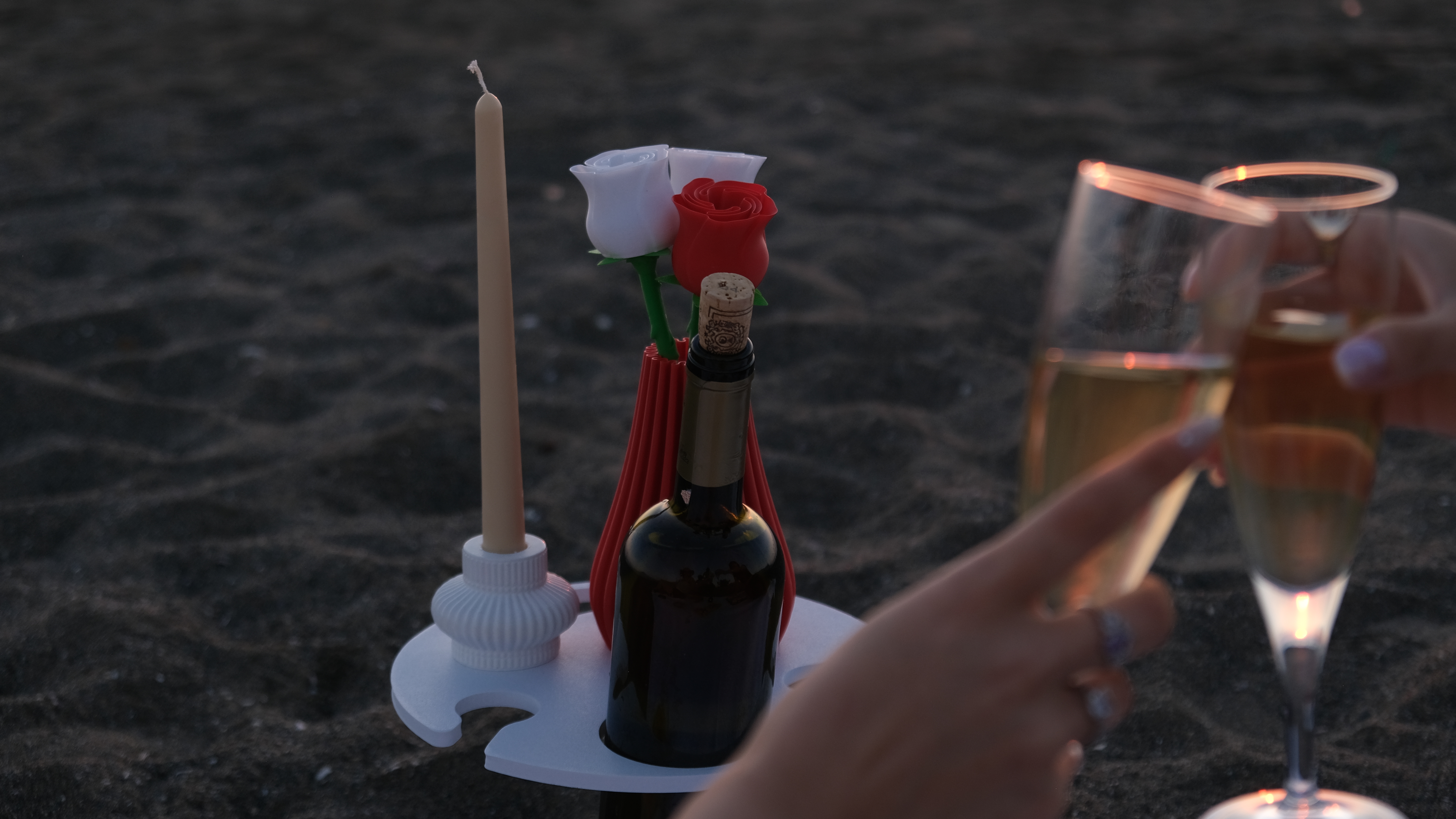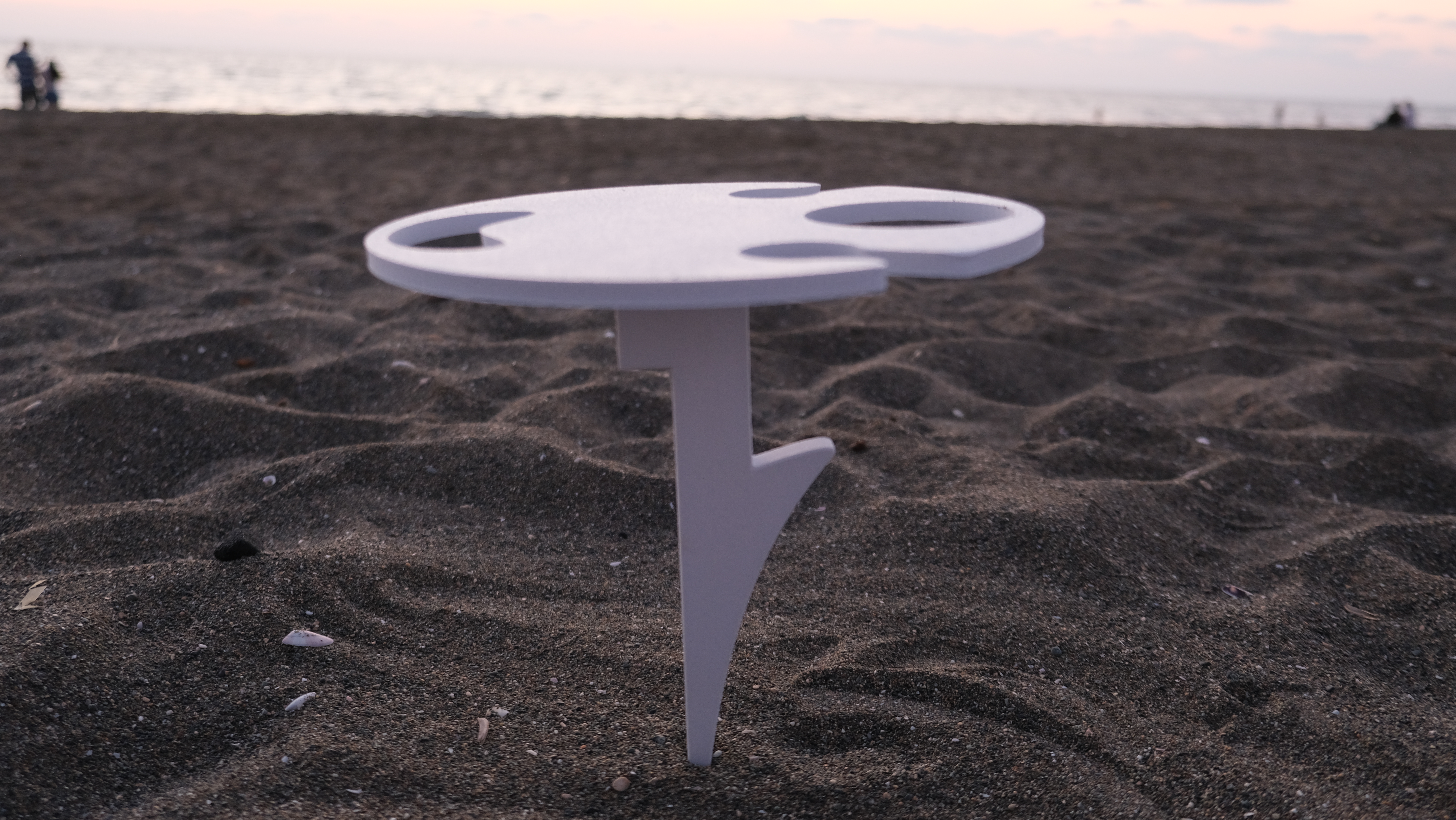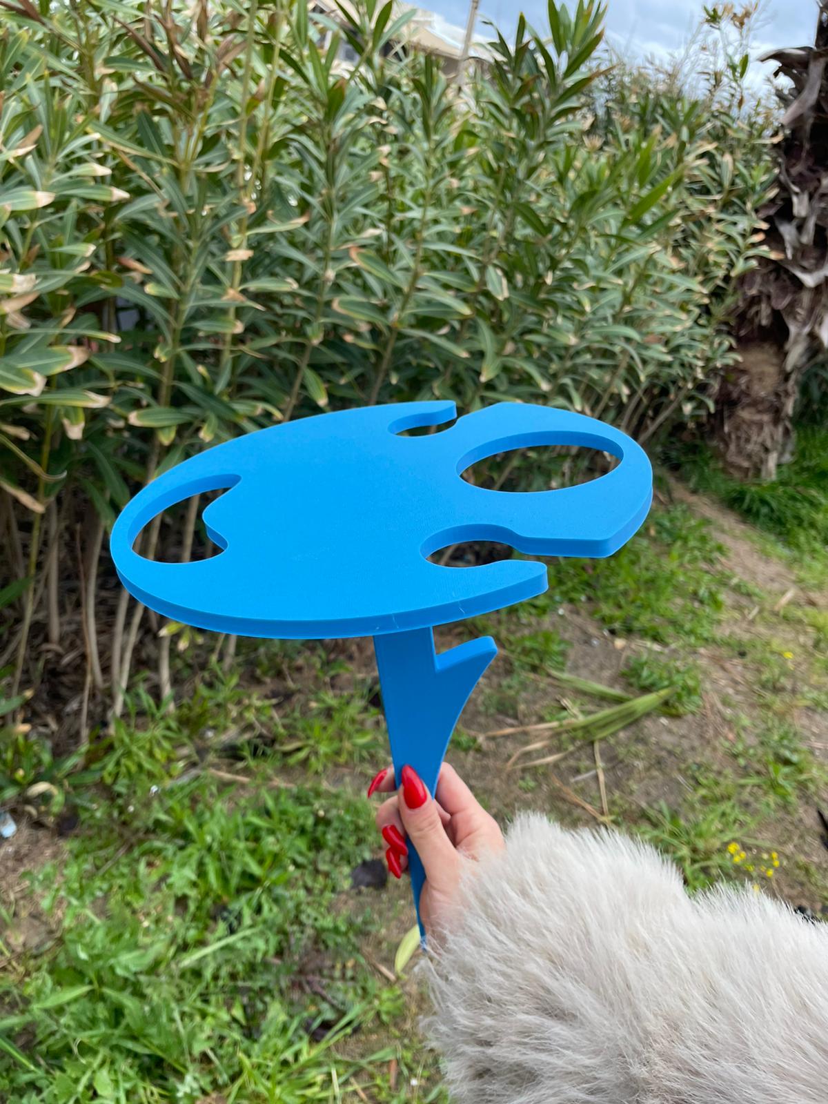 Bu taşınabilir masa, 3D baskı teknolojisi ile üretilmiş hafif ve dayanıklı yapısıyla kum ya da çim zemine kolayca sabitlenir. İki kadeh için özel yuvası, şişe tutucu aparatı ve ekstra alanıyla içeceklerinizi ve atıştırmalıklarınızı güvenle taşımanızı sağlar.